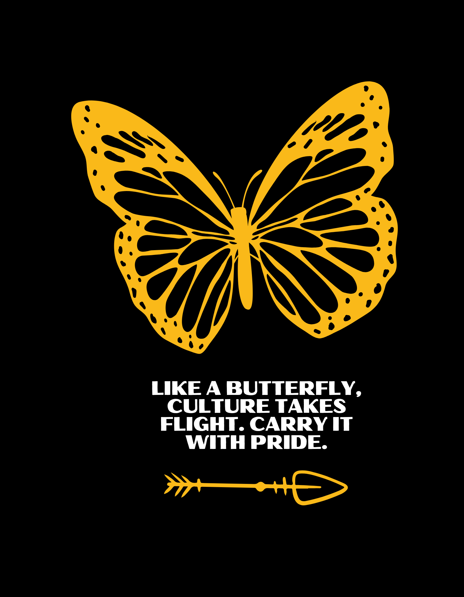 This tote bag celebrates more than just an accessory; it's a statement. Featuring the inspiring message "Like a butterfly, culture takes flight. Carry it with pride," it celebrates the vibrant journey and evolution of culture. Carry it as a reminder to embrace your heritage, express your individuality, and carry the beauty of your culture with confidence.